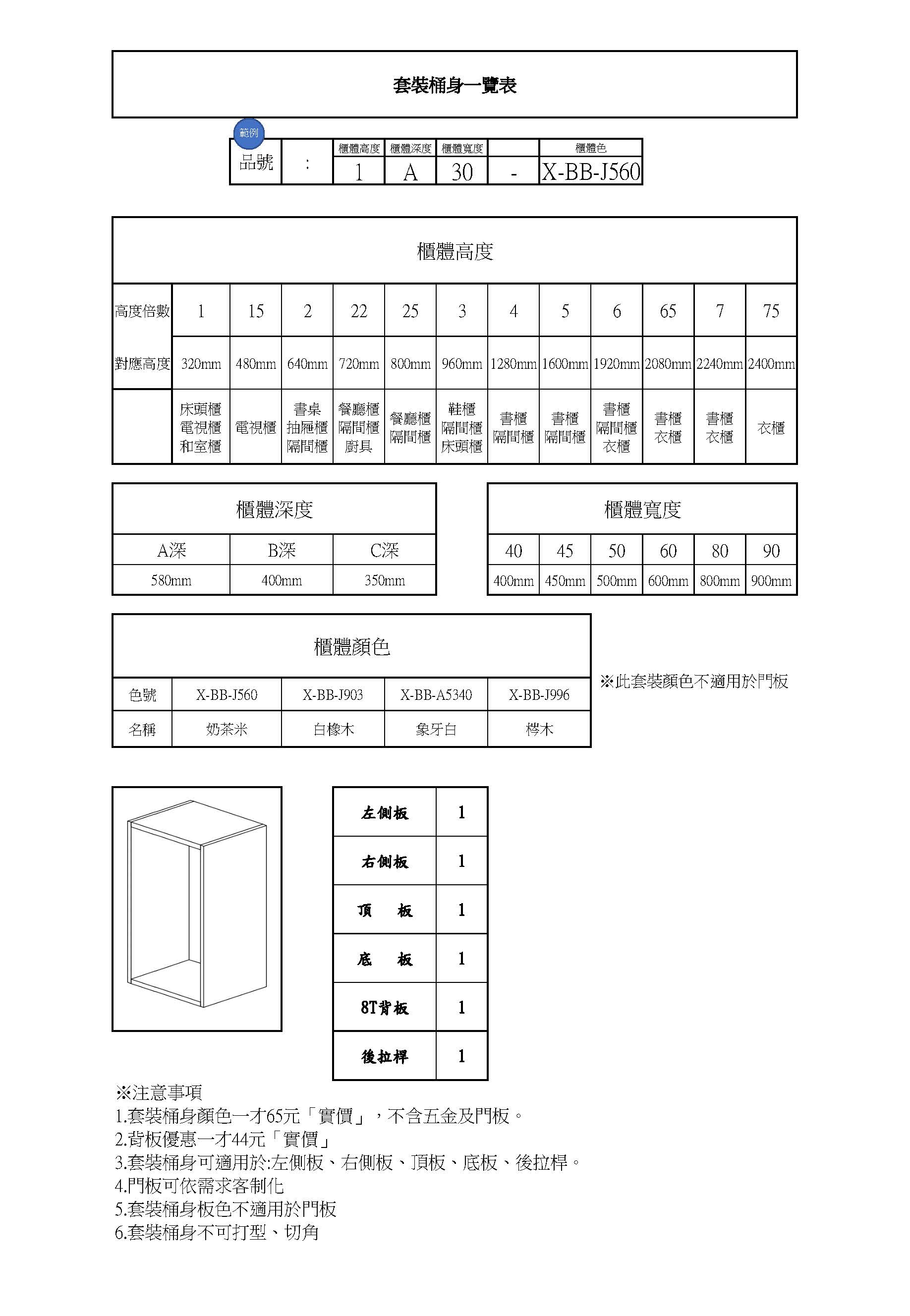 *套裝桶身顏色一才65元「實價」,不含五金及門板。